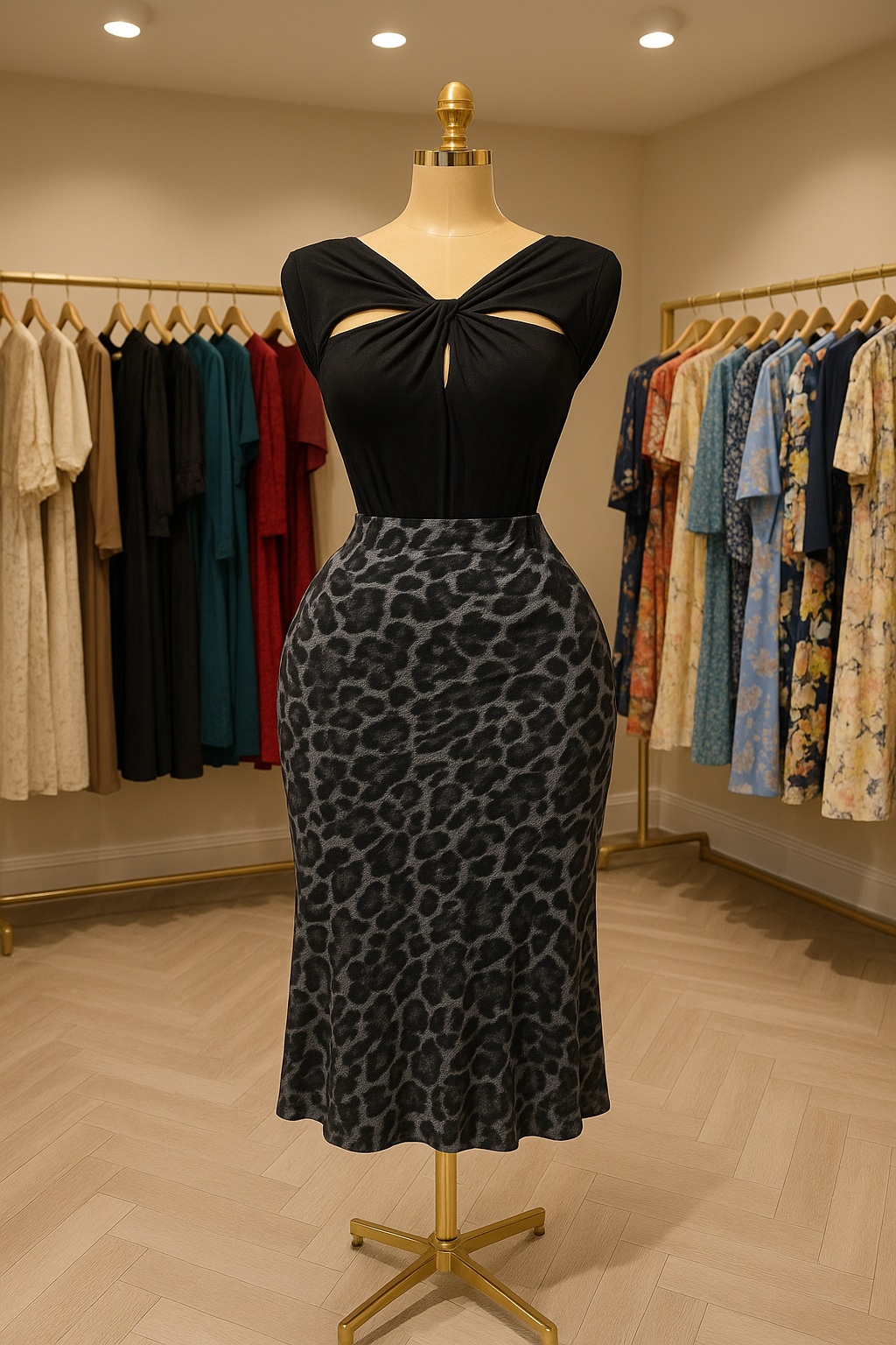 Charcoal Leopard Mermaid Midi Skirt – Size 12