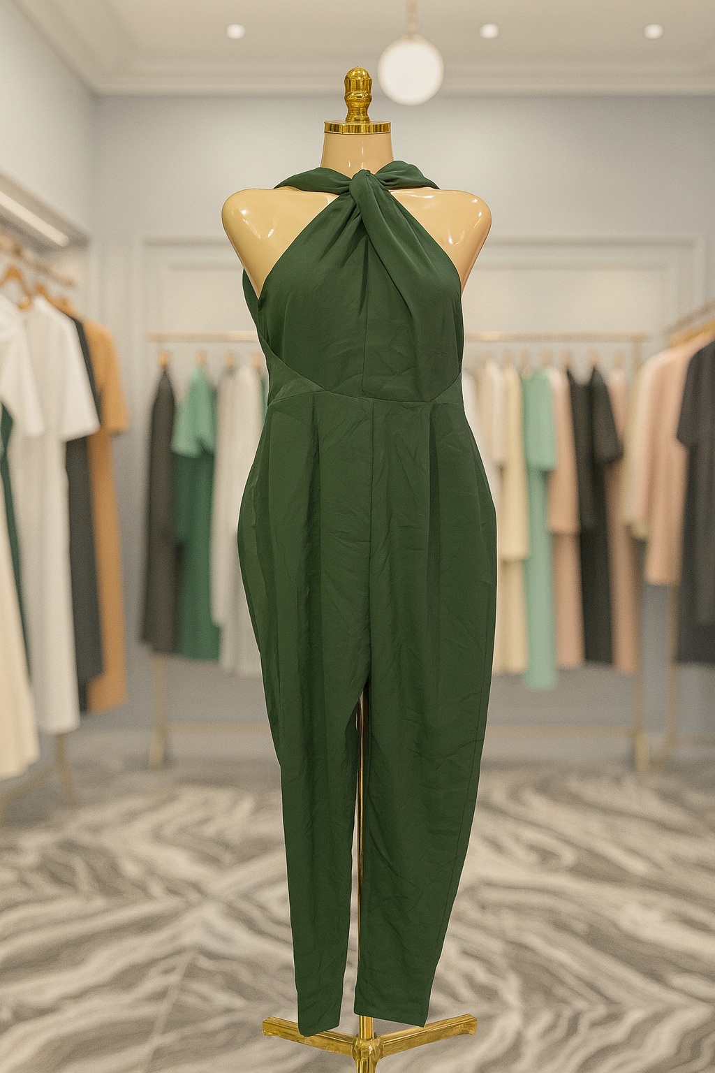 Dark green halter-neck jumpsuit – Size 12