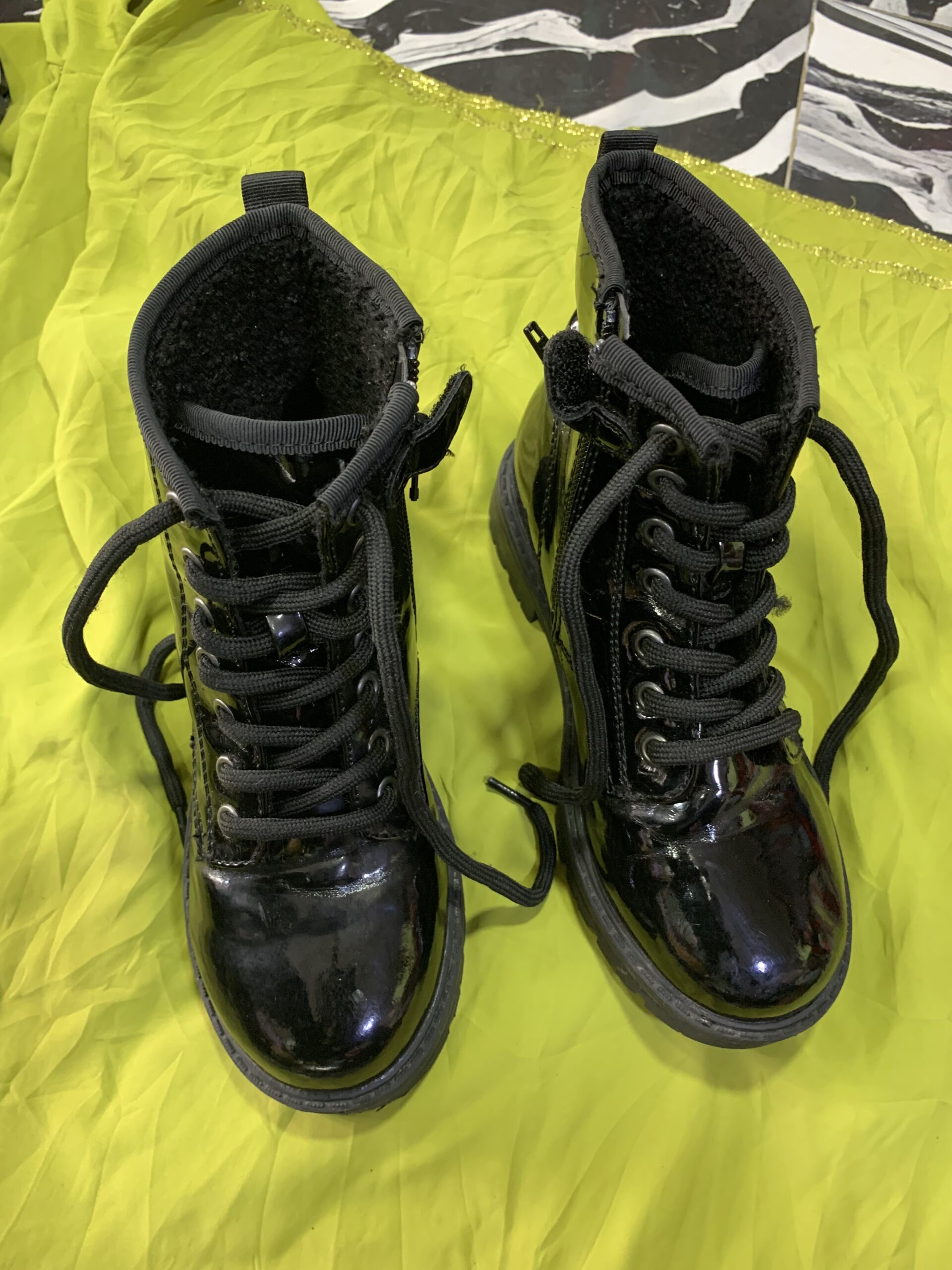 Kids’ black patent combat boots – Size 30.5