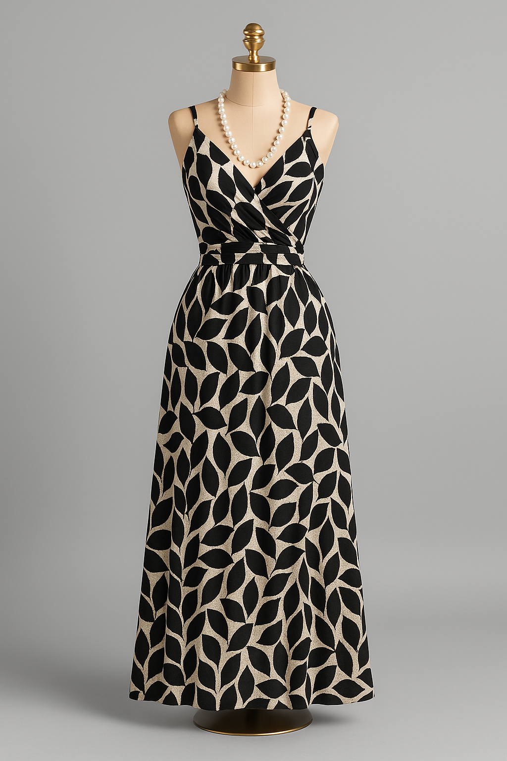 Leaf-print wrap maxi dress (spaghetti-strap)