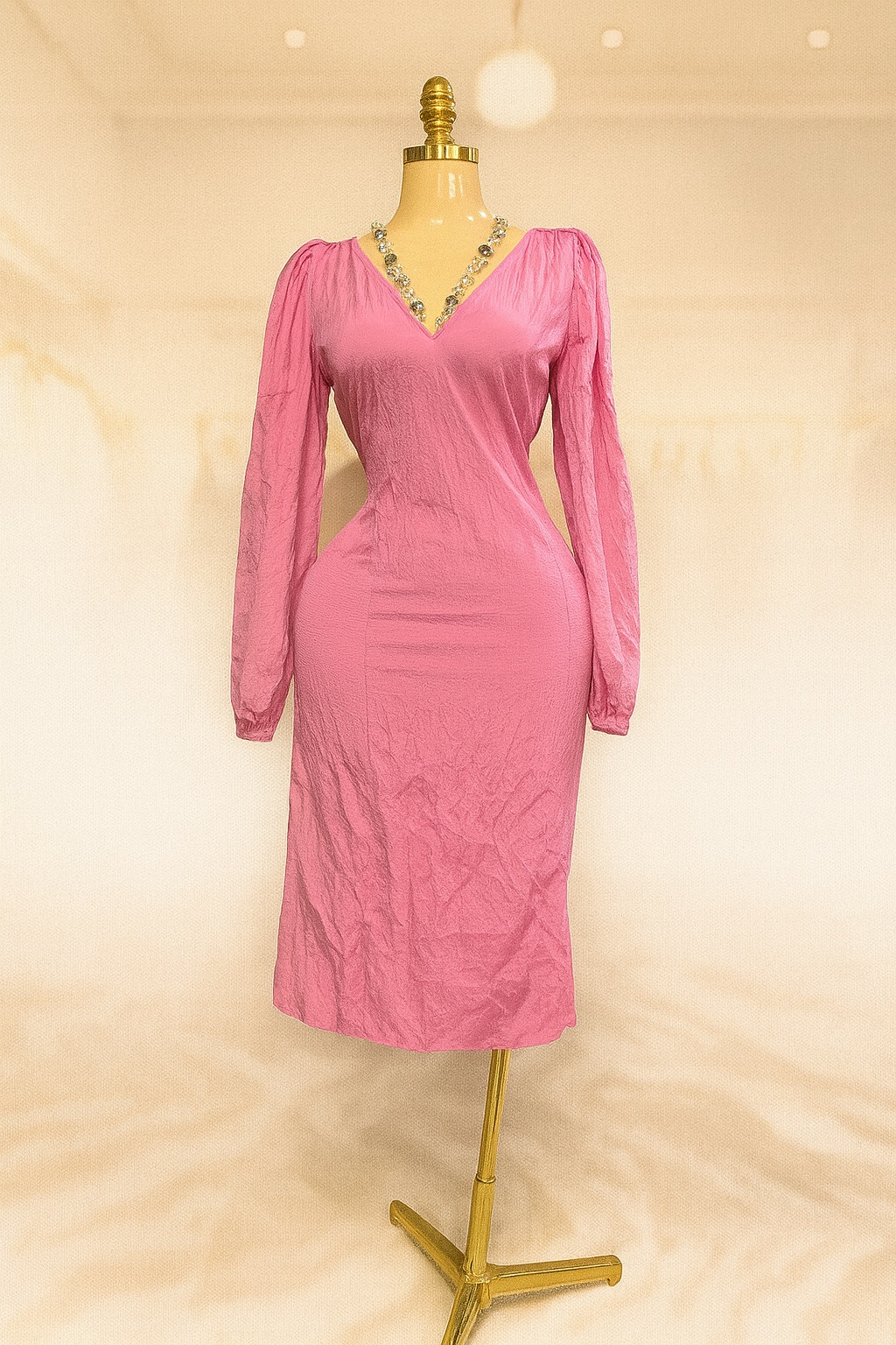 Long-sleeve pink bodycon midi dress – Size 12